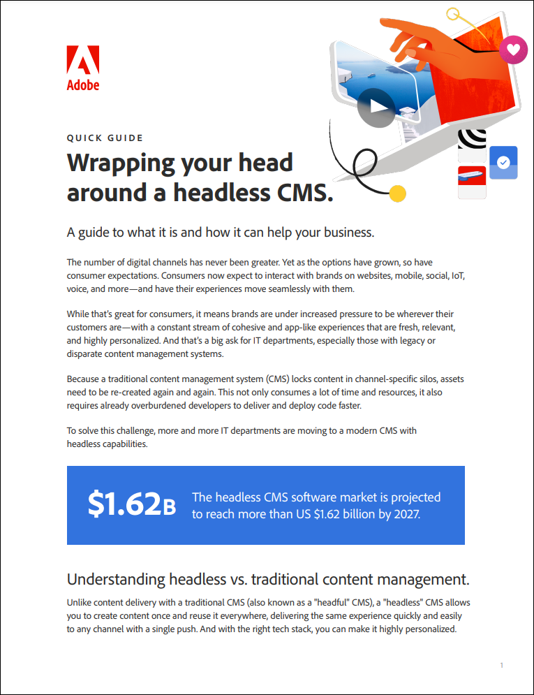 Headless is a complex topic, so this is a quick 4-page guide that explains what it is, how it works, the differences between a traditional and headless CMS, and the key business benefits.